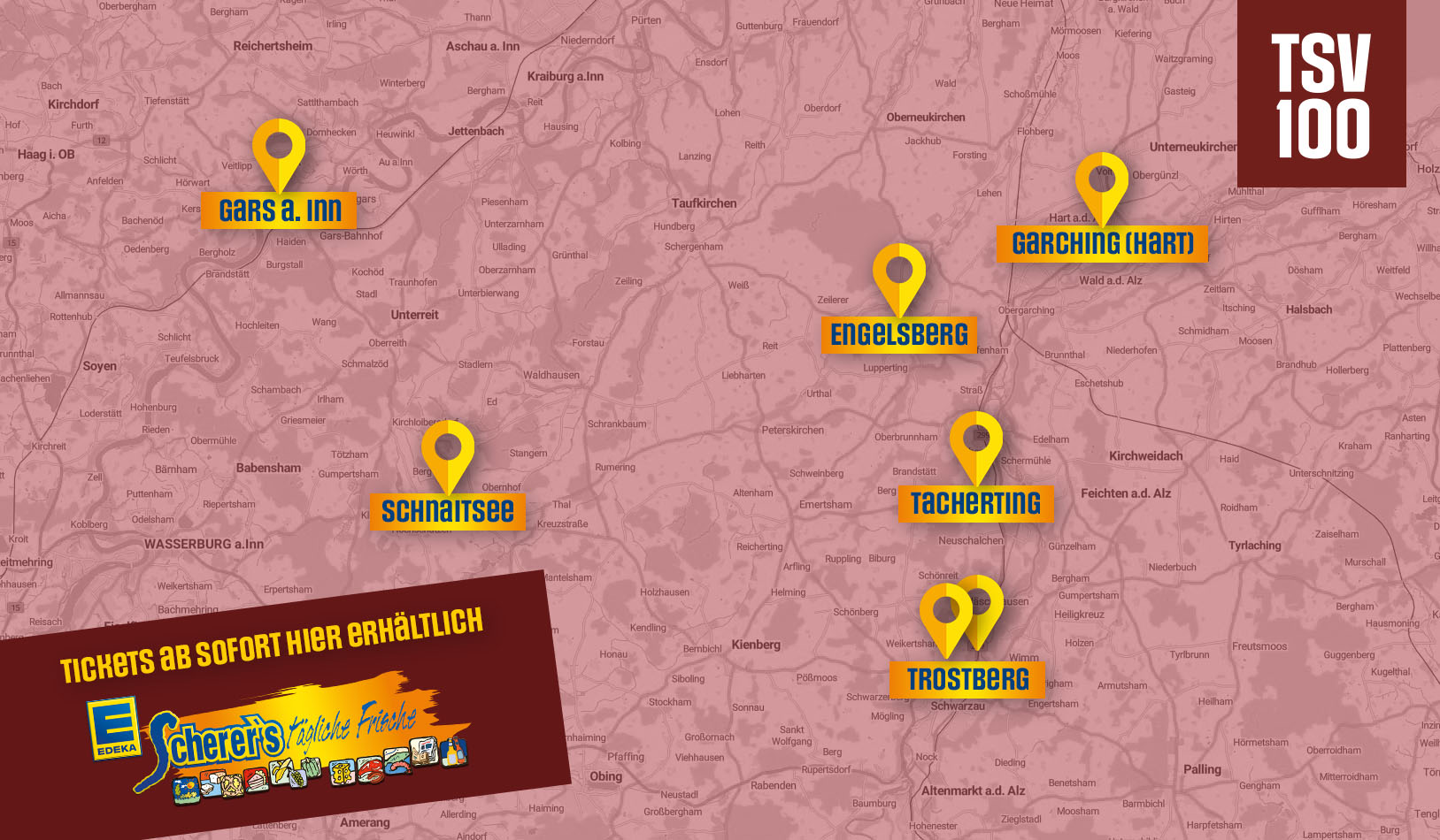 Die Tickets für unsere Malle Live Party sind ab sofort an allen EDEKA Scherer Filialen erhältlich! Einfach an der Kasse nach den Eintrittskarten fragen und direkt mitnehmen. Unsere Vorverkaufsstellen befinden sich in Schnaitsee, Gars am Inn, zweimal in Trostberg, außerdem in Tacherting, Engelsberg und in Hart bei Garching an der Alz. Eine Übersicht der genauen Standorte findet ihr auf dem beigefügten Bild.