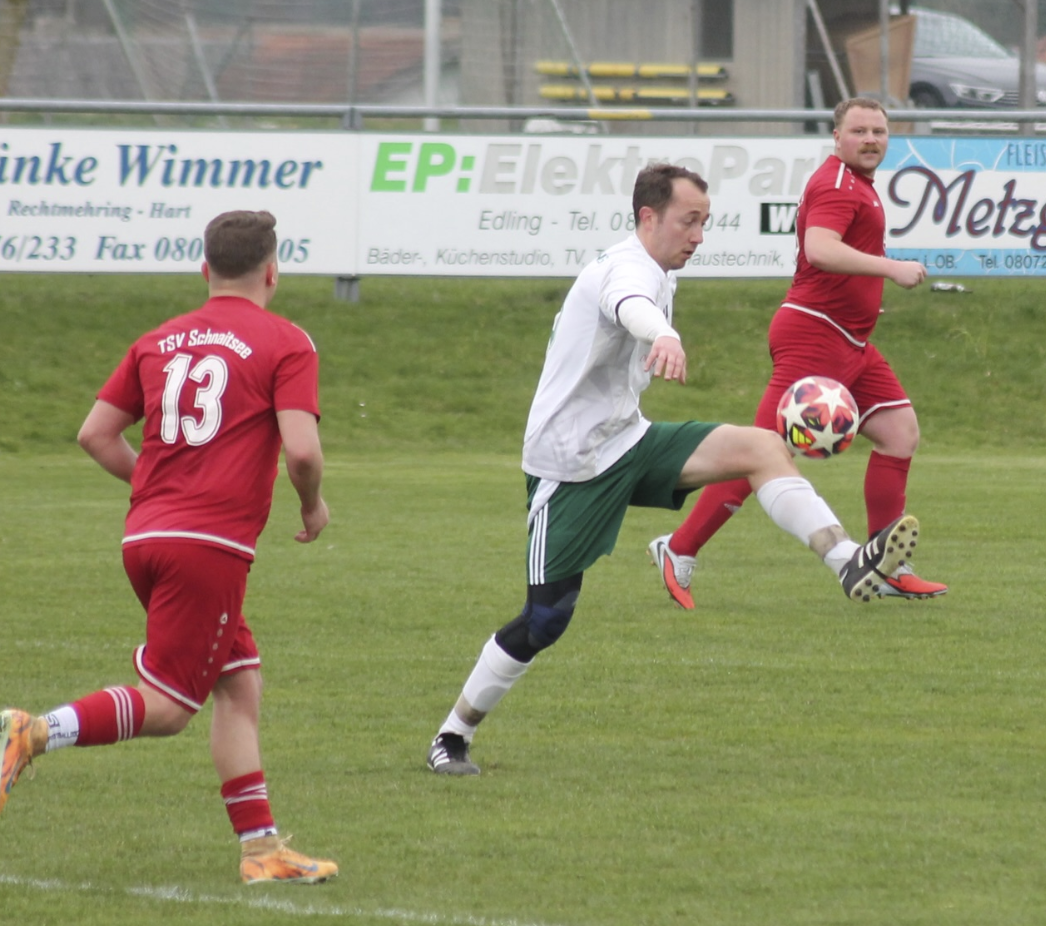 Die Partie ging gleich gut los aus Sicht der Schnaitseer Gäste, denn Christian Sacher wurde im Strafraum von den Beinen geholt und es gab Strafstoß für den TSV, welchen Dominik Schederecker souverän in der dritten Spielminute versenkte. In der Weise ging es dann auch weiter, die Fernsehturmkicker erspielten sich Chance auf Chance und machten ein richtig gutes Auswärtsspiel, doch die Verwertung lies stark zu wünschen übrig. Lukas Lamprecht, Tobias Fritz und Michael Neumeier scheiterten alle samt an Heimtorwart Alexander Boschner. Zudem setzte Lukas Lamprecht einen weiteren Versuch über den Kasten, Lukas Wastlhuber verpasste eine Hereingabe nur knapp und ein direktes Eckentor von Martin Edlmann wurde wegen vermeintlichem Foulspiel abgepfiffen. Dieser Chancenwucher wurde mit dem Halbzeitpfiff bestraft, denn Rechtmehring bekam einen Strafstoß zugesprochen, welchen Patrick Strohmaier zum Ausgleich versenkte.